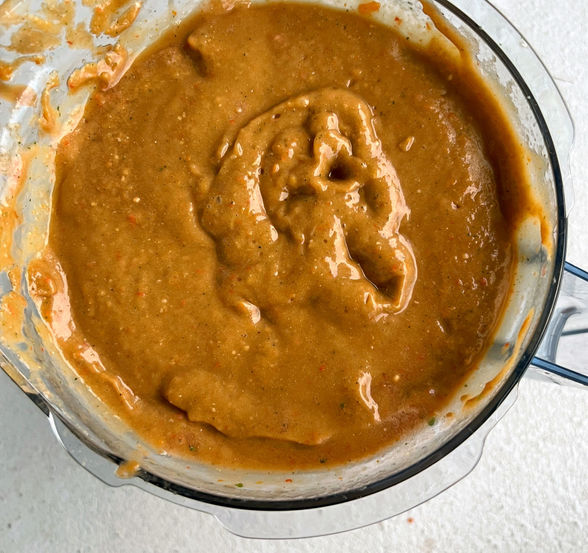 Step 2 Next blend together all the sauce ingredients and then pour over vour zucchini noodles.